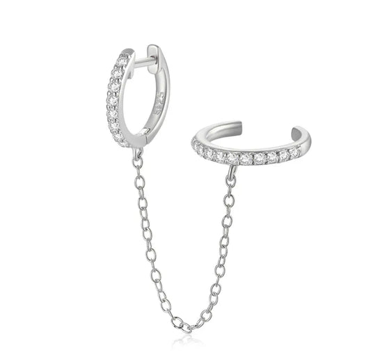 Cuff and Huggie Pave Combination Earring
